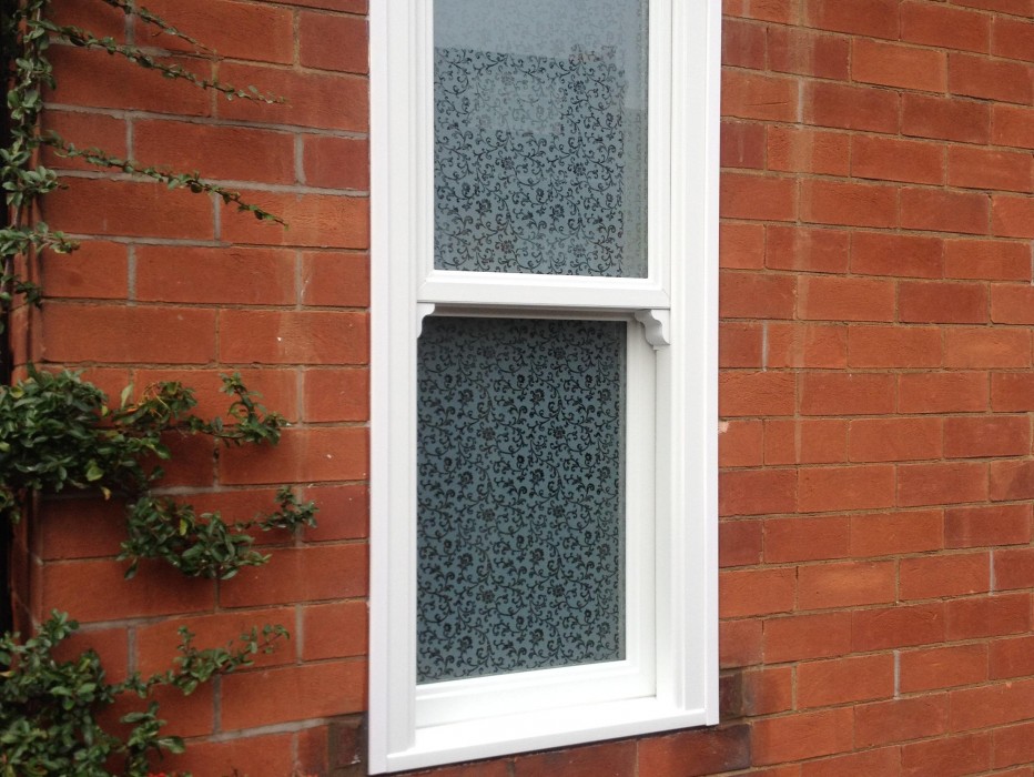 Sliding Sash window from our Heritage Range in smooth White Pvcu with Brocade glazing. Keeping the tradition.