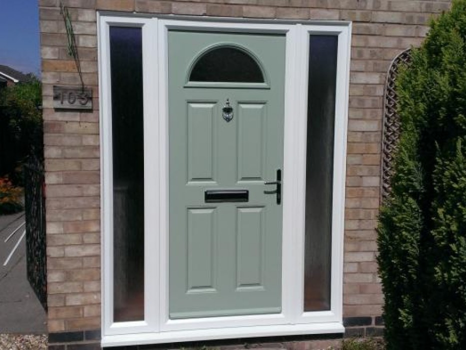 4 Panel 1 Arch Composite in Chartwell Green, with Obscure Glazing, from the Door Stop Range.