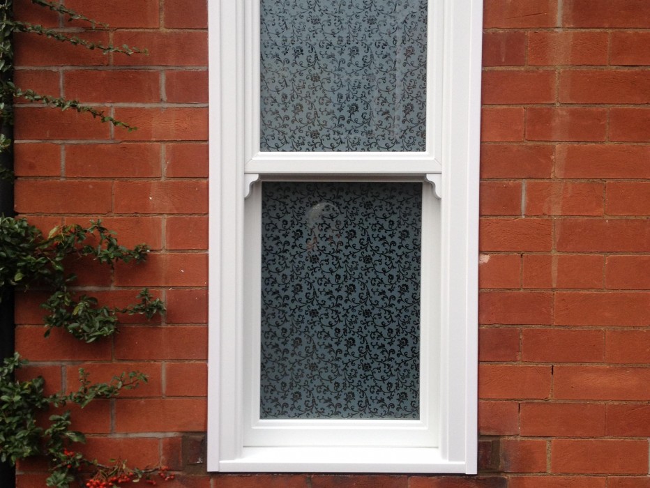 Sliding Sash window from our Heritage Range in smooth White Pvcu with Brocade glazing. Keeping the tradition.